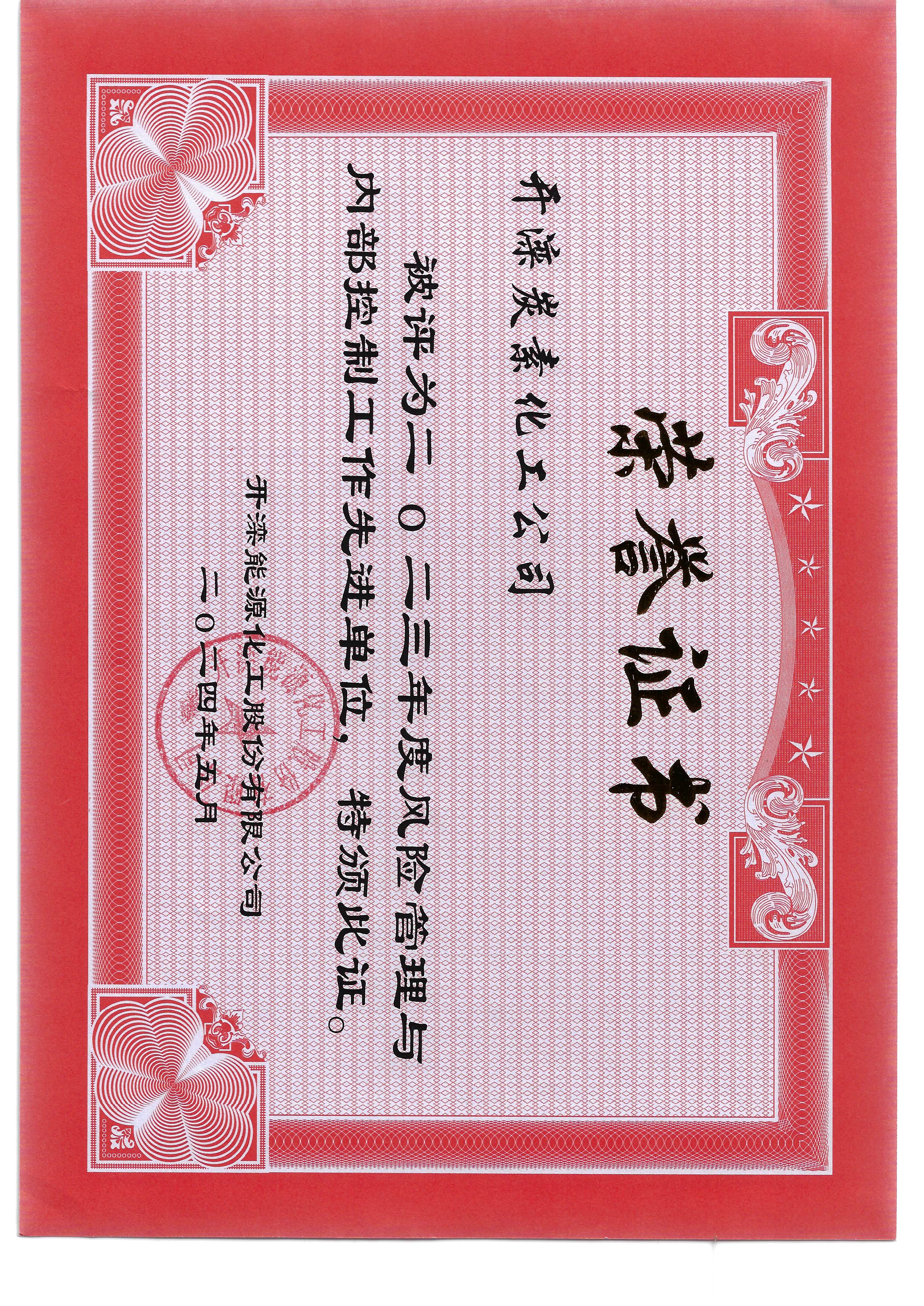 我司被開(kāi)灤能源化工股份有限公司授予2023年度風(fēng)險(xiǎn)管理與內(nèi)部控制工作先進(jìn)單位